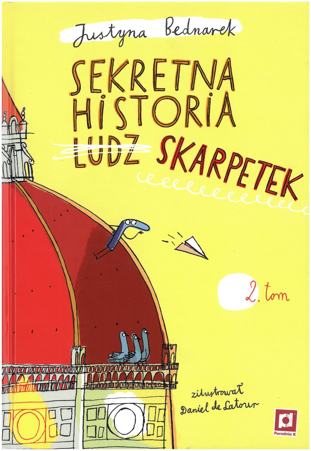 W kolejnym zbiorze opowiadań o przeuroczych otulistópkach poznajemy dalsze ich perypetie związane z historią świata. Tym razem skarpetki pomagają samemu Leonardowi da Vinci’emu w stworzeniu portretu wszystkim doskonale znanej Mony Lizy. Okazuje się, że ten dziwny uśmieszek na jej twarzy to właśnie ich sprawka 😉 Mało tego przyłączają się do piratów na Morzu Południowochińskim, by wspólnie z nimi pokonać szkarłatnego smoka. Dzięki nim poznajemy także w czym tkwi sekret niejakiej Wielkiej Stopy z Dzikiego Zachodu. Dowiadujemy się jaki związek mają skarpety ze słynną „Opowieścią wigilijną” Dickensa, jak powstały pierwsze ruchome zdjęcia czy też która z bohaterek stała się pierwszą kosmiczną podróżniczką i wyruszyła na podbój księżyca. A na zakończenie w sposób niezwykle obrazowy przedstawiony został konflikt niebiesko-żółtych skarpet z czerwonymi rękawicami. Oczywiście wyłącznie dzięki pomocy biało-czerwonych otulistóp udało się rozpruć natrętnych napastników. I wszystko jak zwykle dobrze się skończyło. • Jak widać skarpety opanowały cały świat i to dzięki nim jego historia toczy się dalej. Bo jakżeby on wyglądał bez ich udziału? No jak? Skarpety po prostu wszędzie muszą zostawić odcisk swojej pięty 😉 I to jest wspaniałe!